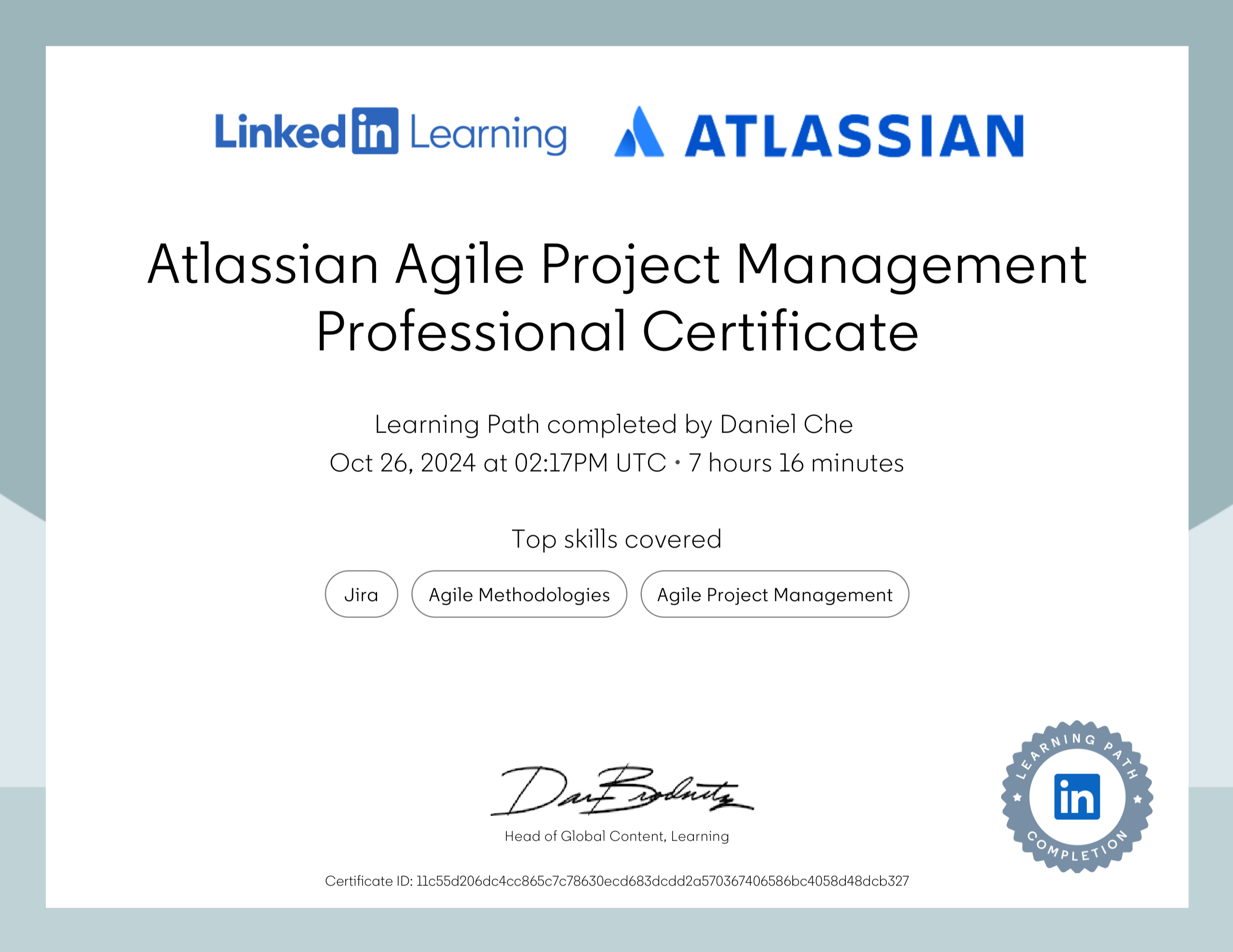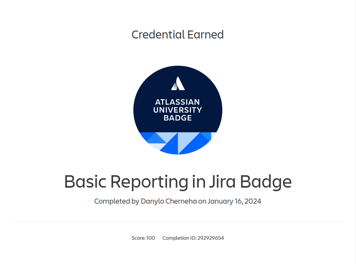 To enhance my project management capabilities, I completed a series of advanced courses from Atlassian University. These certifications demonstrate my comprehensive understanding of Jira, Confluence, and Trello, three essential tools for modern project management.