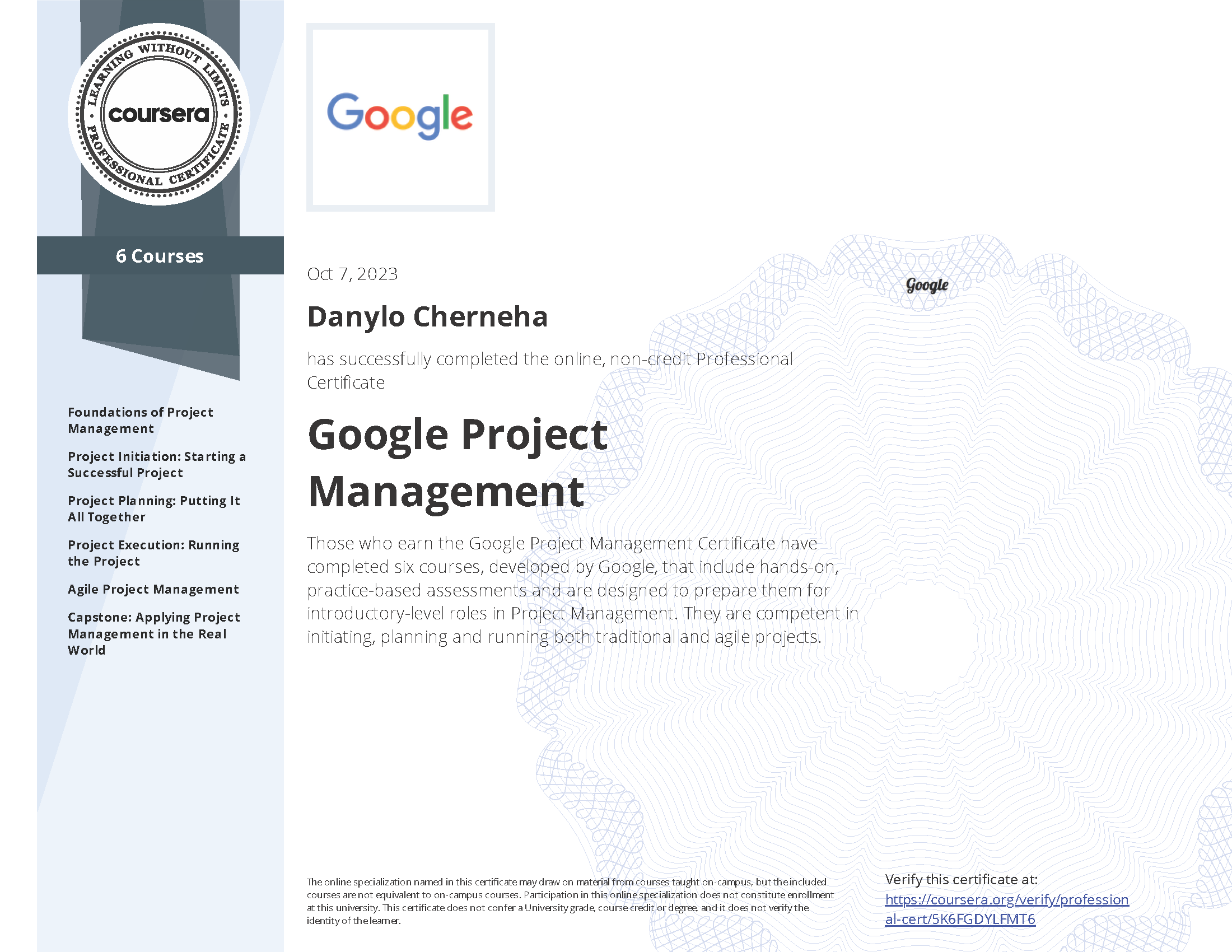 Google Project Management Professional Certificate